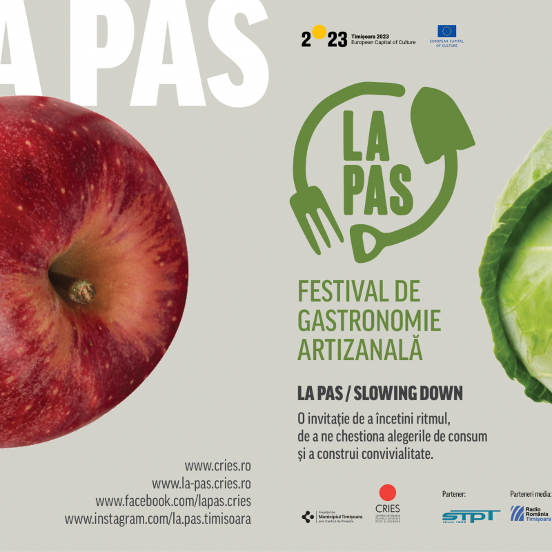 [/vc_column_text][/vc_column_inner][vc_column_inner column_padding=”no-extra-padding” column_padding_tablet=”inherit” column_padding_phone=”inherit” column_padding_position=”all” background_color_opacity=”1″ background_hover_color_opacity=”1″ column_shadow=”none” column_border_radius=”none” column_link_target=”_self” gradient_direction=”left_to_right” overlay_strength=”0.3″ width=”1/4″ tablet_width_inherit=”default” column_border_width=”none” column_border_style=”solid” bg_image_animation=”none” offset=”vc_hidden-sm vc_hidden-xs”][/vc_column_inner][/vc_row_inner][vc_row_inner column_margin=”default” column_direction=”default” column_direction_tablet=”default” column_direction_phone=”default” bottom_padding=”80″ text_align=”left”][vc_column_inner column_padding=”no-extra-padding” column_padding_tablet=”inherit” column_padding_phone=”inherit” column_padding_position=”all” background_color_opacity=”1″ background_hover_color_opacity=”1″ column_shadow=”none” column_border_radius=”none” column_link_target=”_self” gradient_direction=”left_to_right” overlay_strength=”0.3″ width=”1/4″ tablet_width_inherit=”default” column_border_width=”none” column_border_style=”solid” bg_image_animation=”none” enable_animation=”true” animation=”fade-in-from-bottom” delay=”50″ offset=”vc_hidden-sm vc_hidden-xs”][/vc_column_inner][vc_column_inner column_padding=”no-extra-padding” column_padding_tablet=”inherit” column_padding_phone=”inherit” column_padding_position=”all” centered_text=”true” background_color_opacity=”1″ background_hover_color_opacity=”1″ column_shadow=”none” column_border_radius=”none” column_link_target=”_self” gradient_direction=”left_to_right” overlay_strength=”0.3″ width=”1/2″ tablet_width_inherit=”default” column_border_width=”none” column_border_style=”solid” bg_image_animation=”none” enable_animation=”true” animation=”fade-in-from-bottom” delay=”100″ offset=”vc_col-xs-12″][vc_custom_heading text=”LA PAS/Slowing Down este un program al asociației CRIES, implementat cu sprijin financiar al Primăriei Timișoara prin Centrul de proiecte. Programul a fost inițiat în anul 2018 în parteneriat cu Asociația Timișoara Capitală Europeană a Culturii.” font_container=”tag:p|font_size:20|text_align:center|color:rgba(255%2C255%2C255%2C0.65)” use_theme_fonts=”yes” css_animation=”none” el_class=”boldtext”][/vc_column_inner][vc_column_inner column_padding=”no-extra-padding” column_padding_tablet=”inherit” column_padding_phone=”inherit” column_padding_position=”all” background_color_opacity=”1″ background_hover_color_opacity=”1″ column_shadow=”none” column_border_radius=”none” column_link_target=”_self” gradient_direction=”left_to_right” overlay_strength=”0.3″ width=”1/4″ tablet_width_inherit=”default” column_border_width=”none” column_border_style=”solid” bg_image_animation=”none” offset=”vc_hidden-sm vc_hidden-xs”][/vc_column_inner][/vc_row_inner][vc_row_inner equal_height=”yes” content_placement=”middle” column_margin=”default” column_direction=”default” column_direction_tablet=”default” column_direction_phone=”default” top_padding=”0″ text_align=”left” css=”.vc_custom_1596112360646{margin-top: -50px !important;}”][vc_column_inner column_padding=”padding-2-percent” column_padding_tablet=”inherit” column_padding_phone=”inherit” column_padding_position=”all” background_color_opacity=”1″ background_hover_color_opacity=”1″ column_shadow=”none” column_border_radius=”none” column_link_target=”_self” gradient_direction=”left_to_right” overlay_strength=”0.3″ width=”1/3″ tablet_width_inherit=”default” column_border_width=”2px” column_border_color=”#e2e2e2″ column_border_style=”solid” enable_border_animation=”true” bg_image_animation=”none” enable_animation=”true” animation=”fade-in”][vc_custom_heading text=”LA PAS: Festival de gastronomie artizanală” font_container=”tag:h3|font_size:24|text_align:left|color:%23ffffff|line_height:20px” google_fonts=”font_family:Roboto%3A100%2C100italic%2C300%2C300italic%2Cregular%2Citalic%2C500%2C500italic%2C700%2C700italic%2C900%2C900italic|font_style:700%20bold%20regular%3A700%3Anormal” css_animation=”none” css=”.vc_custom_1689318281941{margin-bottom: 50px !important;}”][vc_custom_heading text=”Pentru trei zile, 13-15 octombrie 2023, am pregătit un spațiu pentru o varietate de experiențe în ritm „la pas„ și un program ce oferă multiple perspective despre legăturile dintre hrană, cultură și consum durabil. Dorim să inspirăm comunitatea locală și să ne lăsăm inspirați de toate experiențele și acțiunile care ne permit să încetinim ritmul de consumare a resurselor noastre și ale planetei.” font_container=”tag:p|text_align:left|color:%23ffffff|line_height:20px” use_theme_fonts=”yes” css_animation=”none” css=”.vc_custom_1695654249747{margin-bottom: -15px !important;}”][nectar_btn size=”large” button_style=”regular” button_color_2=”Accent-Color” color_override=”#ffffff” solid_text_color_override=”#ff6716″ icon_family=”iconsmind” text=”Toate detaliile în timp real” icon_iconsmind=”iconsmind-Triangle-ArrowRight” margin_top=”50″ url=”https://la-pas.cries.ro/2023-2/festival-la-pas-2023/”][/vc_column_inner][vc_column_inner column_padding=”padding-2-percent” column_padding_tablet=”inherit” column_padding_phone=”inherit” column_padding_position=”all” background_color_opacity=”1″ background_hover_color_opacity=”1″ column_shadow=”none” column_border_radius=”none” column_link_target=”_self” gra